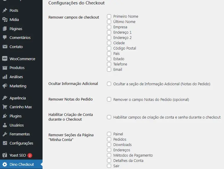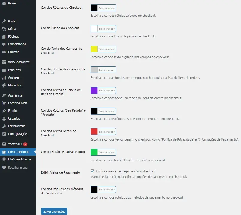 Dino Checkout plugin para personalizar cores e ocultar Campos no chekout